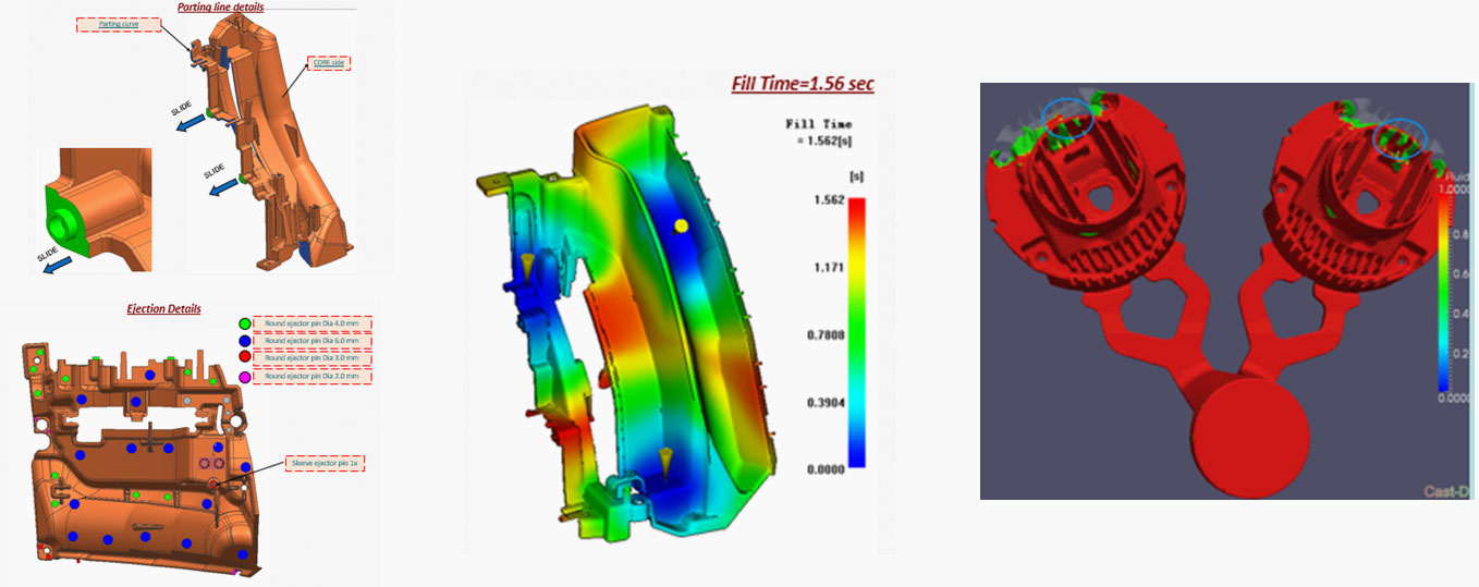 - Mold flow analysis performed to minimize flow lines, high stress areas, insure proper mold filing